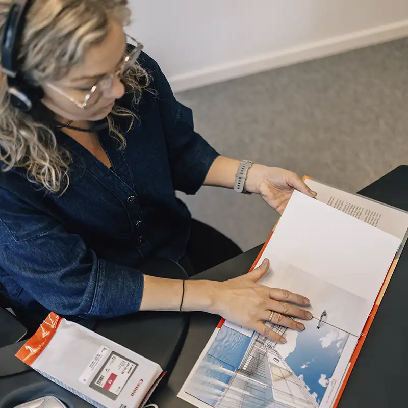 Vores erfarne rådgivere gennemgår dine krav til printstørrelse, hastighed, farvenøjagtighed og tilslutning, så du får en storformat printer, der både sparer tid og leverer skarpe resultater hver gang.